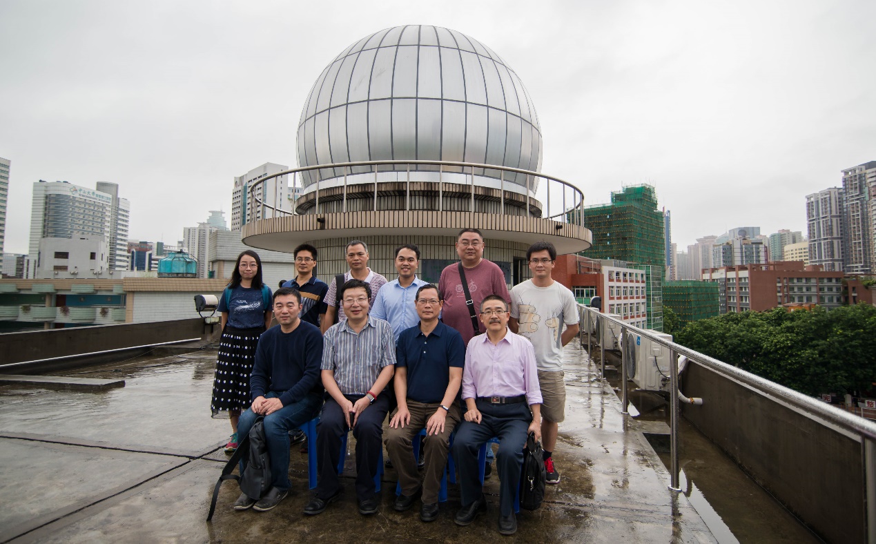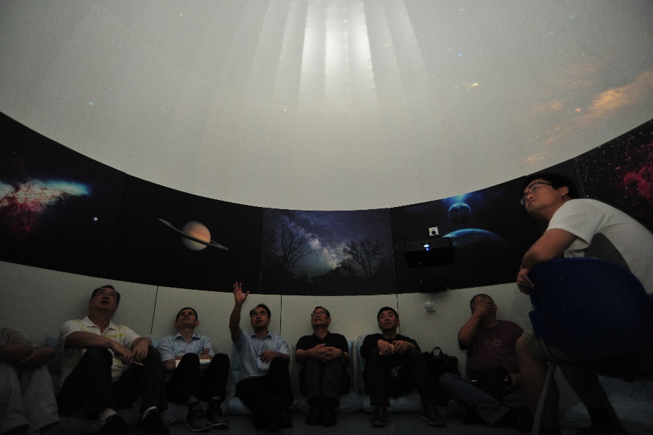 10月19日下午,国家天文台郝晋新副台长、国家天文台崔辰州博士、中山大学冯珑珑教授、暨南大学彭青玉教授、华南师范大学李乡儒教授、广州大学物电学院邓荣标老师、广州天文协会秘书长袁凤芳、重庆梧台科技朱鸣罡经理、广东高宏建设傅俊杰经理等专家在华南师大附中吴青副校长、教学处邱嘉峪副主任和地理科科组长吕鸿斌老师的陪同下,一起来到生化楼6楼天象厅,见证了广东首个WWT互动式数字天象厅的落成。