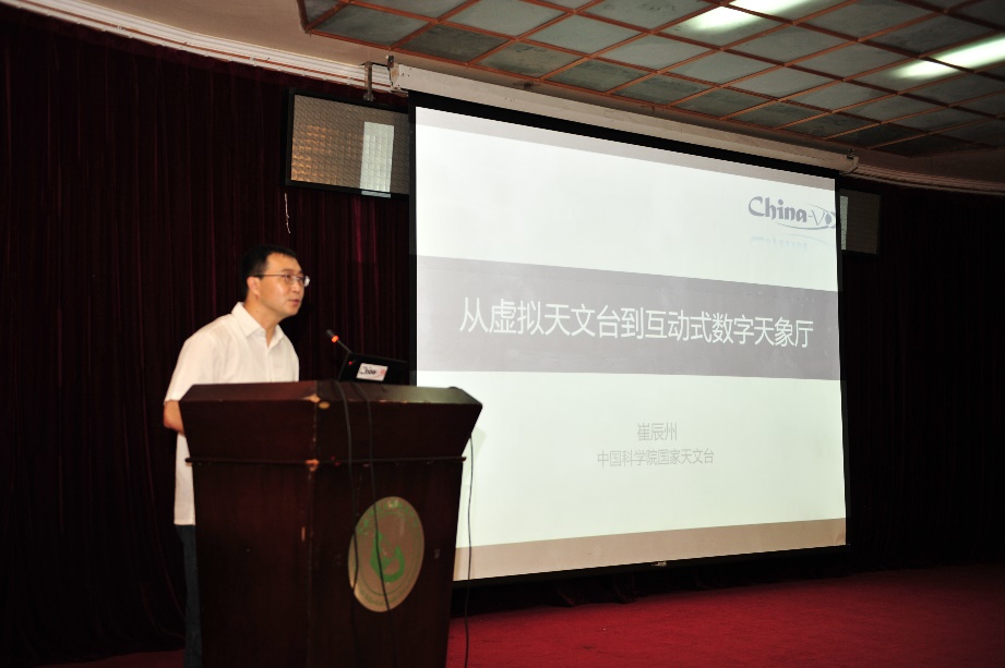 验收会结束后,中国虚拟天文台负责人、国家天文台崔辰州博士为华师附中天文社成员做了《从虚拟天文台到互动式数字天象厅》的讲座。崔博士从大数据时代开始,给同学们讲解了世界各地和中国目前的重大天文研究计划、天文台站的分布和工作情况,丰富的照片和视频资源让同学们开阔了视野,对虚拟天文世界有了新的认识。崔博士说:“中国望远镜的观测能力,加上中国的计算能力,将通过互联网分享给全世界的天文科研工作者及爱好者。这正是我们所追求的普惠科技和无法计算的价值。”