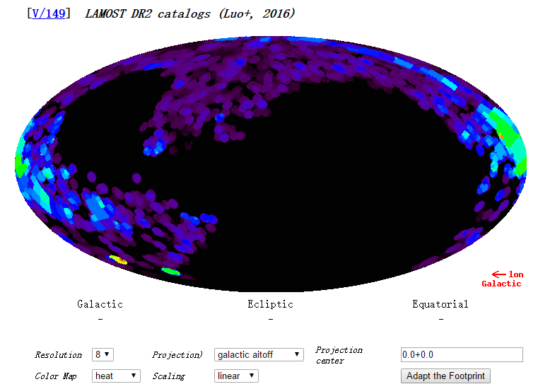 图1VizieR系统自动为LAMOST DR2生成的巡天数据覆盖图