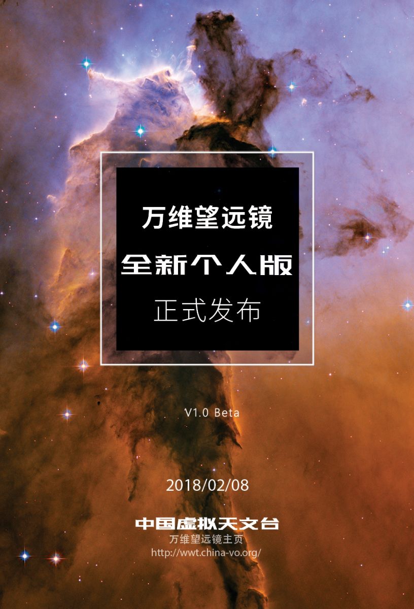 十年来,中国虚拟天文台一直致力于将其本土化,打造一款适合国内用户需求的天文科研与科普教育平台。经过十年的探索与努力,在这个辞旧迎新,春节将至的时节,中国虚拟天文台终于完成了全新万维望远镜个人版所有的开发及测试工作。它将更加紧密地联系起用户与天文大数据,更加贴近国人的习惯,也必将吸引更多人的目光,赢得更多人的喜爱,为推动真实天文数据在中国天文科普教育领域的应用开拓更广阔的未来空间。