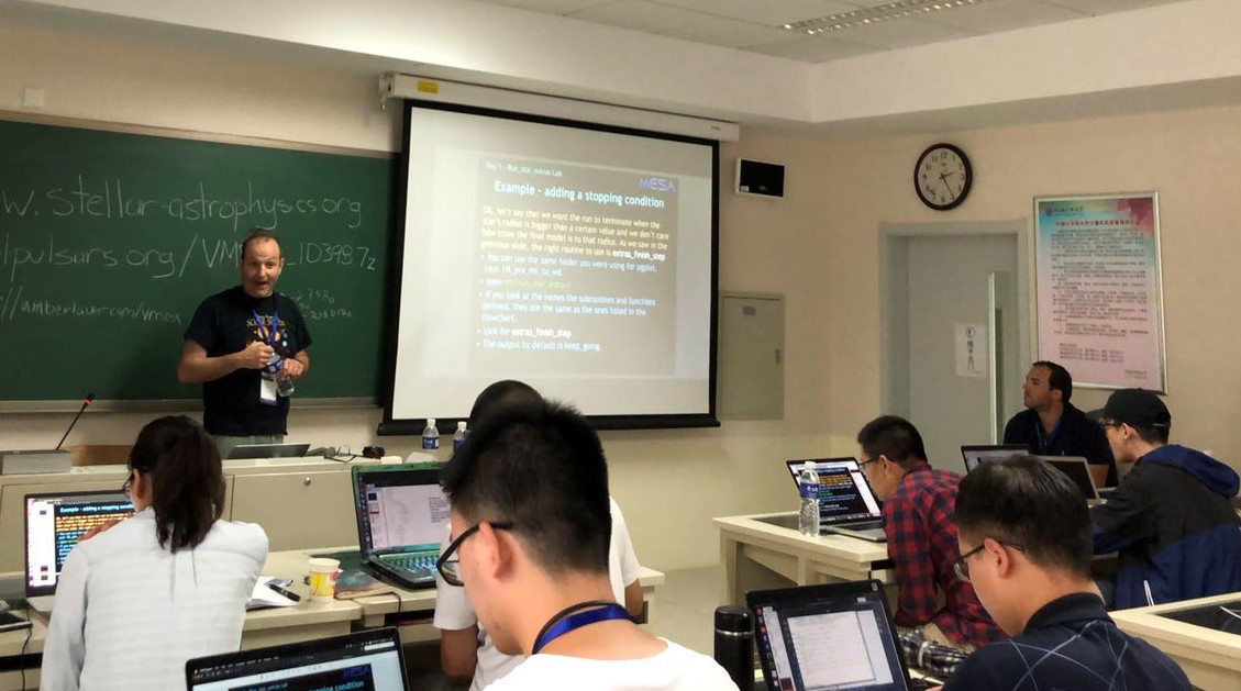 MESA (Modules for Experiments in Stellar Astrophysics) 是目前最先进的模块化开源恒星演化计算程序,在恒星物理的各个研究方向都获得了非常广泛的应用。天文与空间科学学院从国外知名大学和研究机构邀请了多位精通MESA的专家学者前来授课,内容涵盖大质量恒星演化,双星演化,星团和白矮星新星,以及具体的程序使用。国内多个培养单位的研究生参加了暑期学校,在一周的紧张学习和实践中收获颇丰。