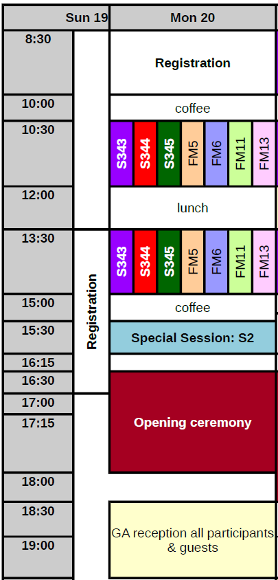 8月20日是大会第一天,日程相对简单。报到注册并茶歇后,率先拉开大会序幕的是3个学术研讨会和4个专题研讨会。S343研讨渐近支巨星AGB对于星系形成和演化的作用,S344聚焦矮星系,S345则会围绕生命起源展开讨论。FM5希望通过历史观测记录研究瞬变现象;FM6关注银河系角动量问题;FM11话题围绕韦布空间望远镜JWST的发射、试运行和早期科学;FM13主要讨论地基和空基天体物理、太阳物理的全球协同观测。