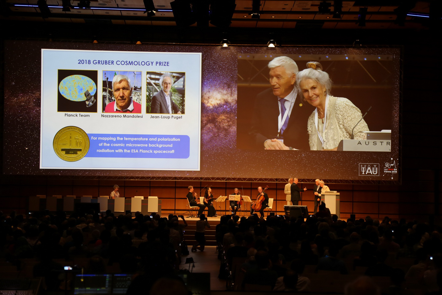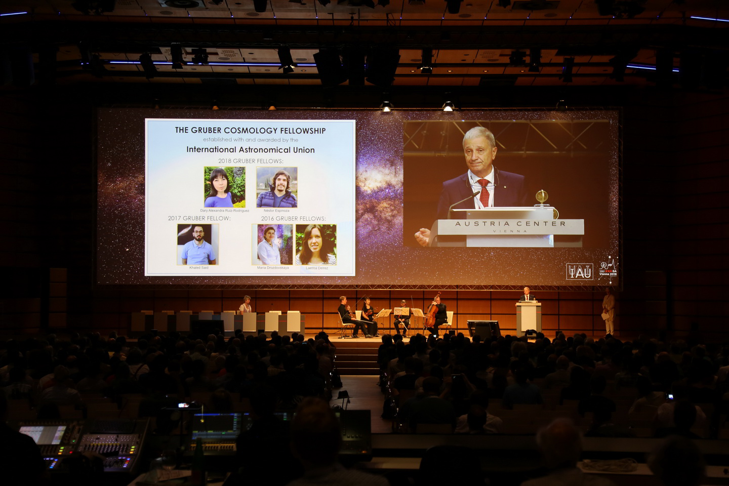 接下来是颁奖环节,奖项包括格鲁伯(Gruber)天文奖学金和格鲁伯宇宙学奖,以及IAU博士奖(PhD Prize)。