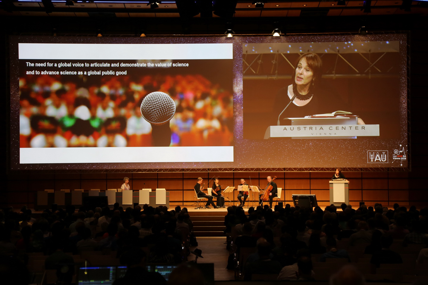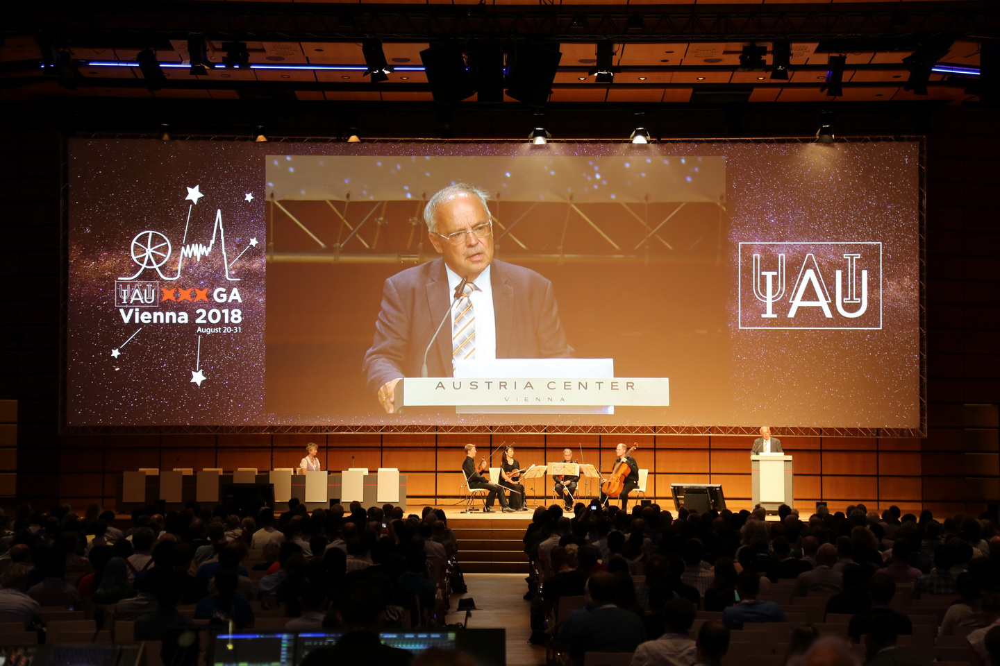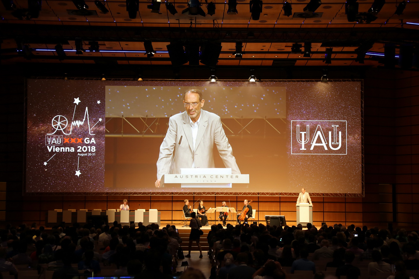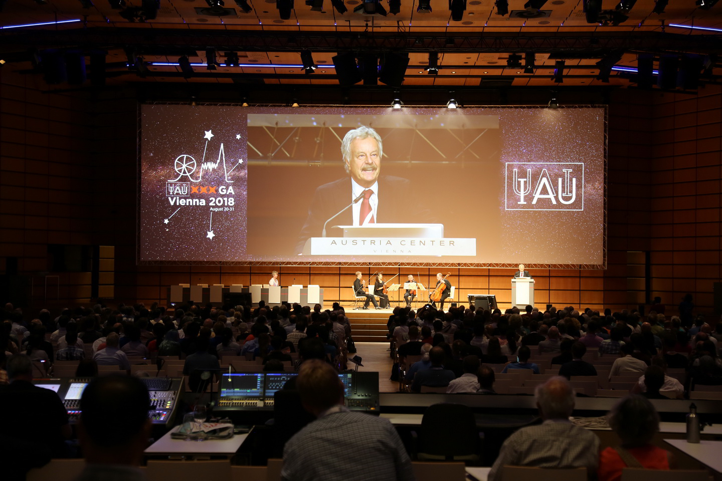 奥地利教育科研部部长、维也纳大学校长、奥地利天文与天体物理学会主席先后致欢迎词。IAU主席 Silvia Torres-Peimbert女士致开幕词。
