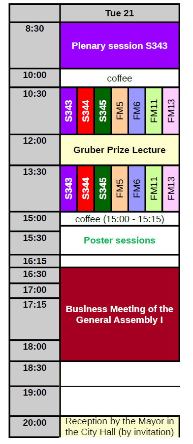 21日的学术研讨会和专题研讨会与20日相同,依然是S343(渐近支巨星与星系)、S344(矮星系)、S345(生命起源)、FM5(历史记录中的时变现象)、FM6(星系角动量)、FM11(韦布空间望远镜)和FM13(国际天文学活动的全球协调)。