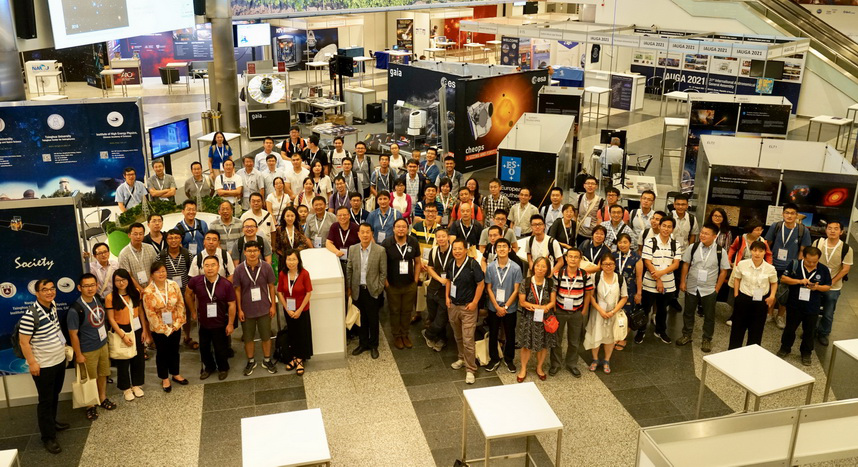 01_04:参加本次IAU大会的部分中国代表在展台前合影(摄影 黎耕)