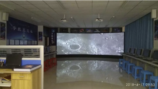 万维望远镜互动式天文特色教室,是以中国虚拟天文台提供技术支持的万维望远镜为平台建设的互动式天文教学场所。教室内部分为三个功能区:WWT教学区、宇宙漫游制作区、弧幕展示区。