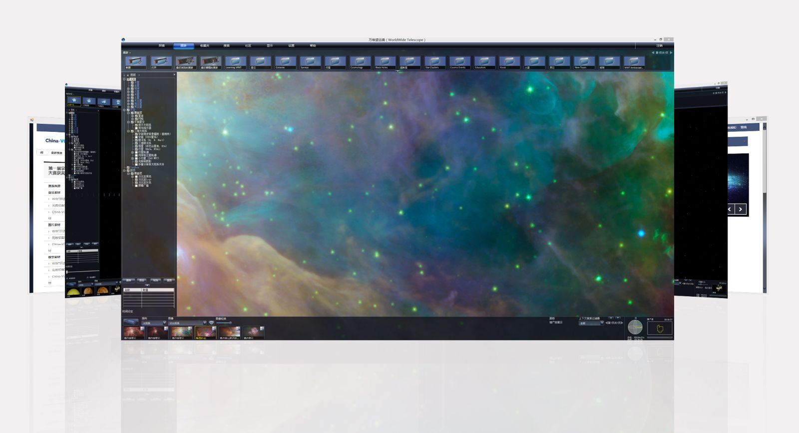 一直以来,万维望远镜(WorldWide Telescope, WWT)都致力于成为一款在大数据时代下探索和发现天文数据的科学工具。它基于虚拟天文台平台将国际以及国内天文机构的海量观测数据汇聚在一起,为使用者提供专业级的观测数据。通过虚拟的天空,万维望远镜允许使用者借助先进的数据可视化技术和友好的用户界面在多波段环境下进行全天搜索。