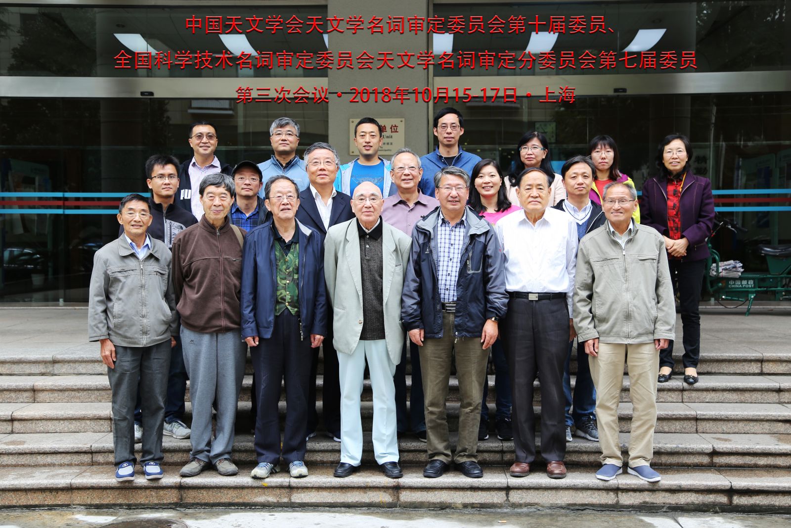 中国天文学会天文学名词审定委员会第十届委员、全国科学技术名词审定委员会天文学名词审定分委员会第七届委员第三次会议于2018年10月15日至17日在上海天文台举行。本届委员会委员(姓氏笔划为序)马月华、卞毓麟、刘炎、杨大卫、何香涛、余恒、邹振隆、陈力、邵正义、赵晖、赵永恒、赵君亮、萧耐园、崔辰州等共14人出席会议。全国科学技术名词审定委员会(全国名词委)刘金婷出席会议。李珊珊、苟利军、钮卫星、黎耕、樊东卫(姓氏笔划为序)等5人作为特邀代表参加会议。