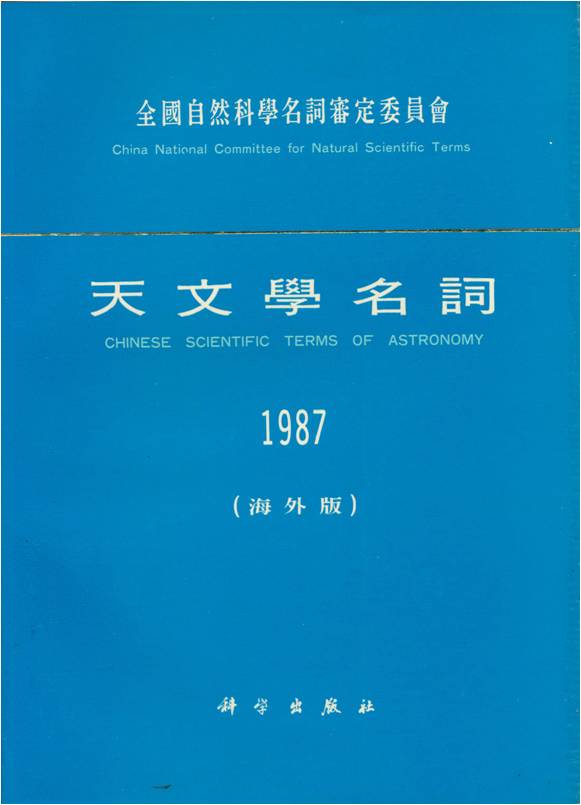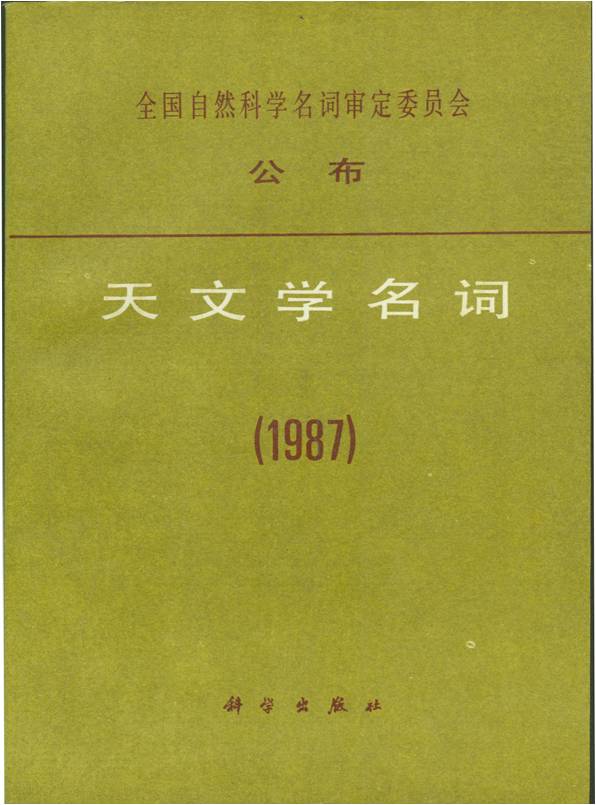 1987年科学出版社出版由全国自然科学名词审定委员会公布的《天文学名词》和《天文学名词》(海外版),收录1956条基本名词。