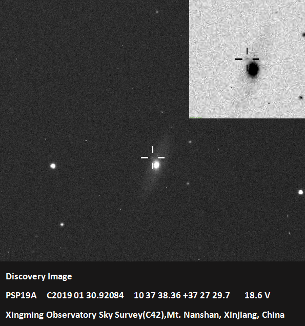 2019年2月1日中午,PSP项目用户熊家锐在位于小狮座的NGC 3304星系附近发现一可疑目标,发现时亮度约为18.6星等。这一发现经高级用户阮建高、徐智坚等人确认并上报CBAT、TNS。该目标内部编号为PSP19A,候选体编号为PSN J10373836+3727297、AT 2019aik。