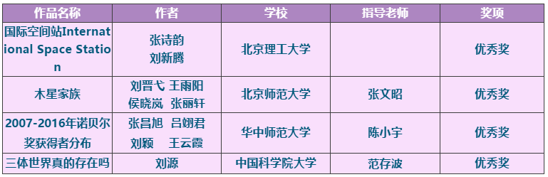 2019年3月21日,第六届“共享杯”大学生科技资源共享服务创新大赛获奖名单在官方网站上公示,由中国虚拟天文台组织的参赛作品获得优秀奖4项。“共享杯”大学生科技资源共享服务创新大赛由科技部国家科技基础条件平台中心主办,旨在促进科技资源开放共享、推动科技创新进校园、助力国家科技创新发展,培养在校大学生利用科技资源创新创业的能力和水平。