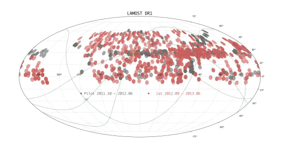 LAMOST先导巡天和正式巡天六年的天区覆盖图