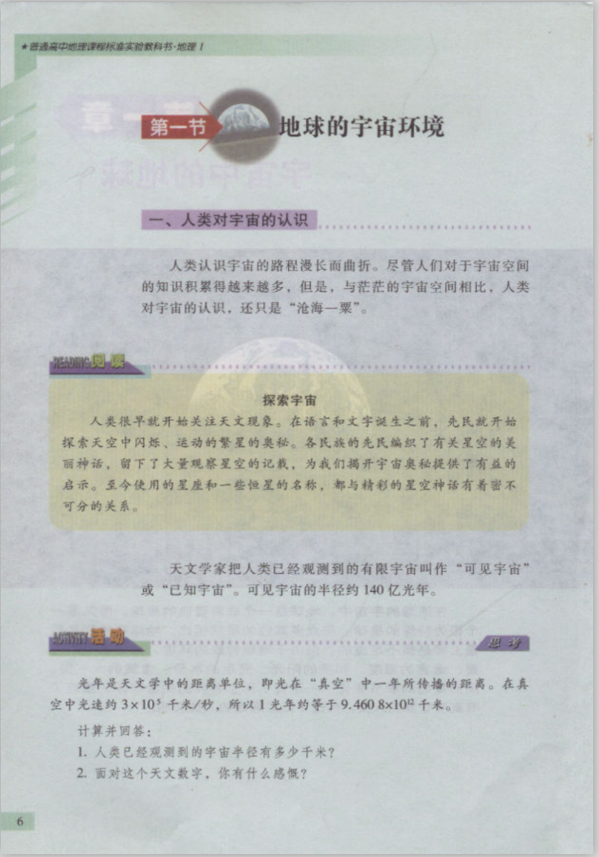 地理湘教版必修一开篇章节即是“宇宙中的地球”,作为高中课程的开端,是否能学好这部分内容对后续课程的学习会产生深远影响。该课程内容充分体现了人类从宏观到微观、从抽象到具体的认知顺序。但宇宙的广袤和抽象、太阳和地球的运动复杂需要足够的空间想象能力,对于初中学生来说过于复杂,加上现有的教学条件缺乏有效的实践性活动支撑,因此过往学生对于这一章节的内容既熟悉又陌生。