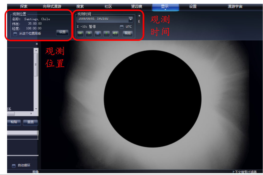 在万维望远镜平台上,“显示”功能恰好可以将数据化的地理规律进行直观呈现,教师只需输入预设好的数据信息,便可演示地球在宇宙中真实的运行状态,以便让学生借助具象的数据更好地理解地理学科中那些抽象的规律。