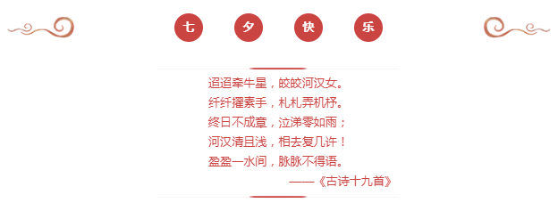 一年一度的七夕节如约而至,又到了牛郎织女相会的日子,作为最具浪漫情调的中国传统节日之一,今天的空气里似乎都弥漫着甜甜的气息。七夕是文人墨客钟爱的节日,历代都有大量的诗篇来描写牛郎织女的故事,通过对夏夜星空意象的表述,抒发对爱情的感悟。