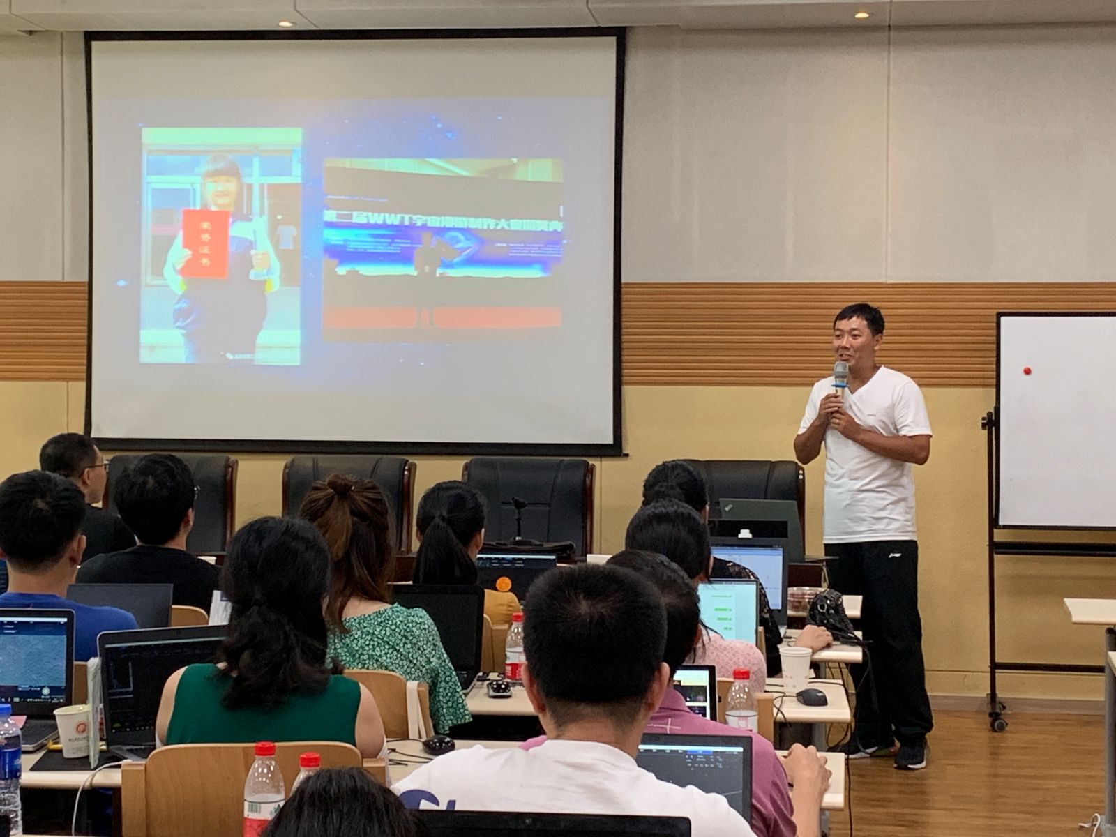 在互动式天文教学部分,来自中国虚拟天文台团队的老师们和武汉市科技馆的万望辉老师共同对万维望远镜从知识到技术展开了全方位的讲解。参训的老师们通过学习逐渐深入了解万维望远镜的各项功能,学习了基本操作方法,并掌握了制作漫游的小技巧。