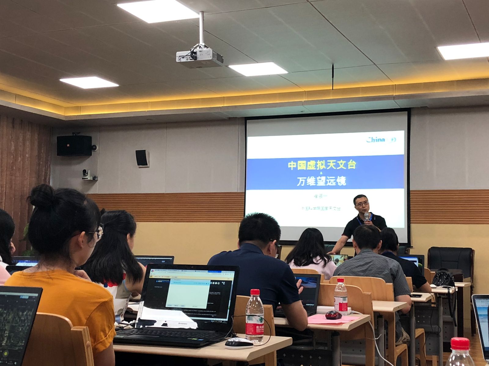 培训伊始,崔辰州博士带来了《万维望远镜与中国虚拟天文台》主题报告,系统介绍了大数据在天文学研究中的重要地位,以及数据驱动的天文科普教育理念及在国内外的应用情况,让参训教师对中国虚拟天文台的工作和基于万维望远镜的科普教育情况有了系统而清晰的认知。