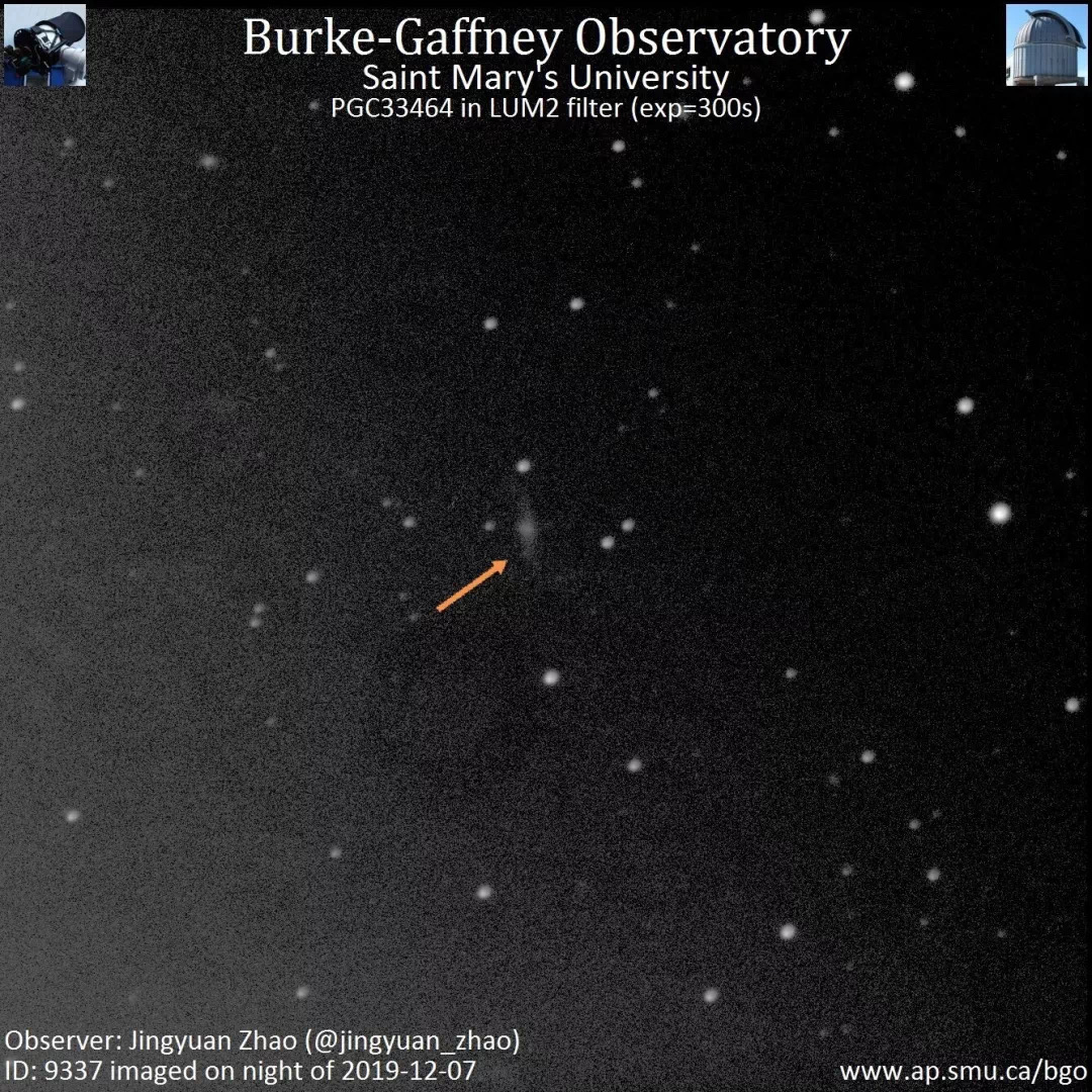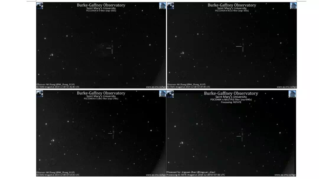 管理员赵经远想起其拥有加拿大圣玛丽大学伯克-加夫尼天文台(Burke-Gaffney Observatory,BGO,以下使用简称)24英寸拉尔夫·麦德约克望远镜(Ralph Medjuck Telescope)的使用权限,当天还剩余一次观测机会。此时正值当地时间夜间且天气晴好,正是望远镜的观测时间,且望远镜比较空闲,便立即使用其进行补拍。仅数分钟便获得了补拍图像,虽然图像较为模糊,但隐约可见该超新星候选体,同时对照PSP图像,候选体位置及亮度基本一致。