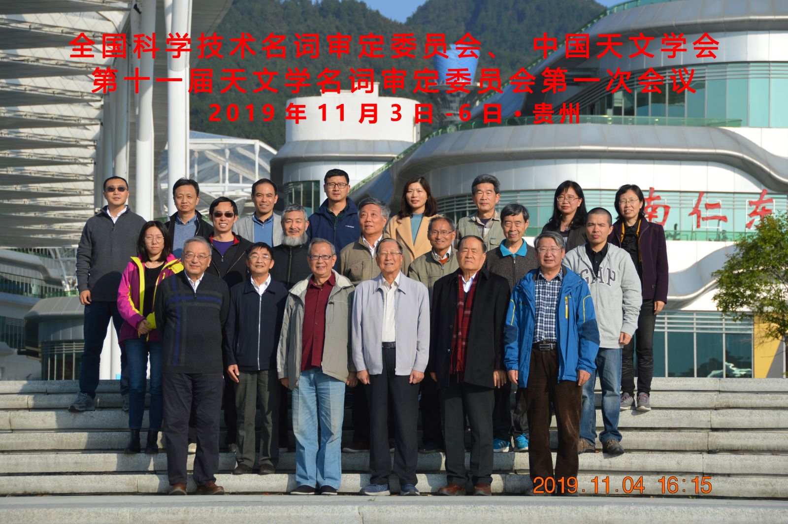 全国科学技术名词审定委员会、中国天文学会第十一届天文学名词审定委员会第一次会议于2019年11月3日至6日在贵州省平塘县天文小镇举行。全国科学技术名词审定委员会(全国名词委)刘金婷,本届委员会委员(以姓氏笔画为序)马月华、王玉民、方成、卞毓麟、刘炎、杨大卫、何香涛、余恒、邹振隆、邵正义、赵晖、赵永恒、黄天衣、萧耐园、崔辰州、谢懿,特邀代表南京大学陈阳、紫金山天文台史建春、国家天文台张博,台北市天文协会陶蕃麟先生以及委员会秘书李珊珊等共22人出席会议。
