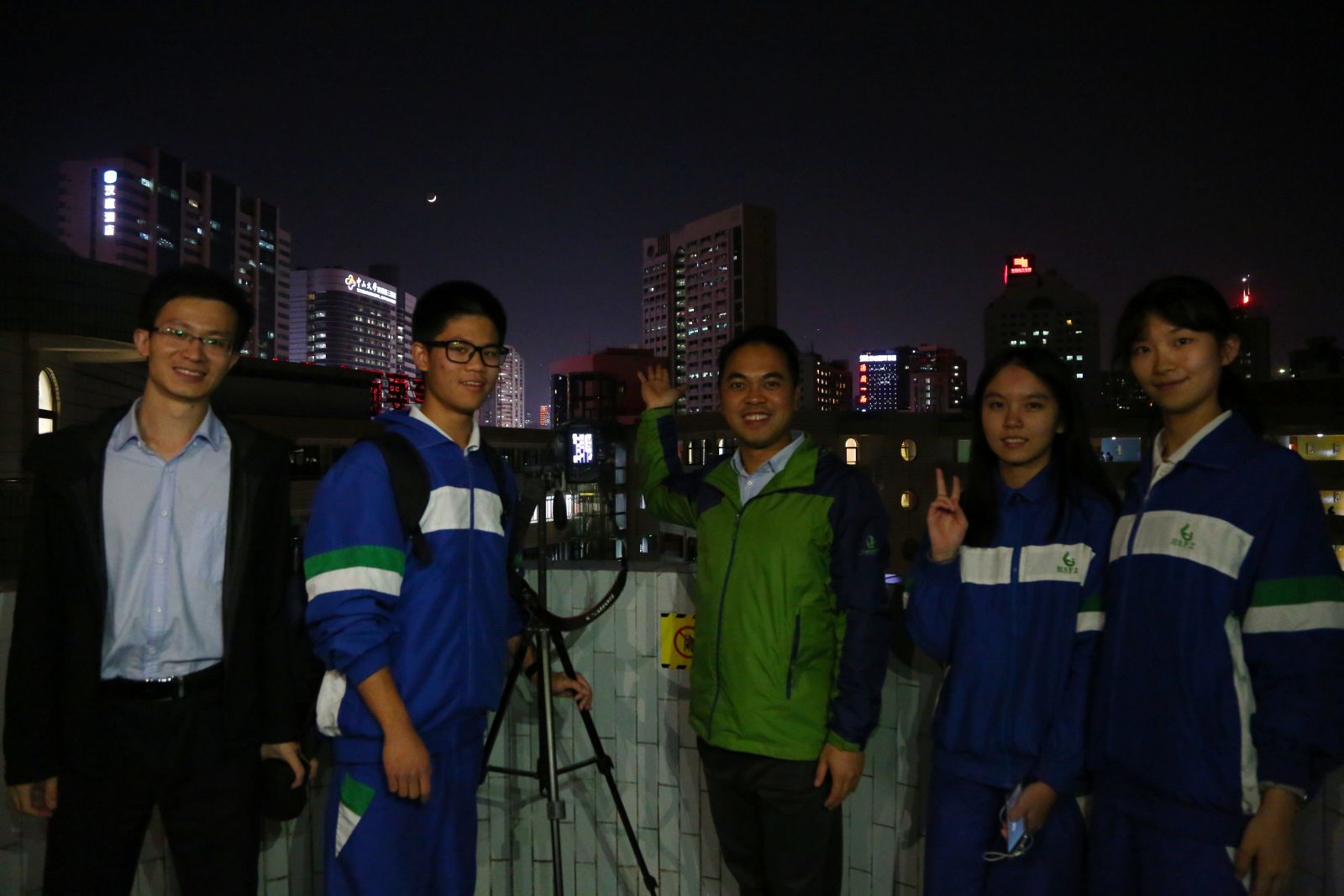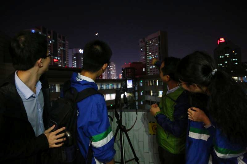 同学们在拍摄 “四星连珠”