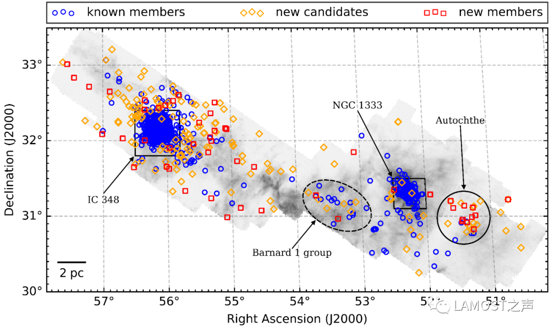 近期,中国科学院紫金山天文台的博士生王小龙,房敏研究员等人利用LAMOST光谱数据和欧空局Gaia卫星的天体测量数据,对英仙座分子云中的年轻星天体进行了研究。利用Gaia卫星的天体测量数据,研究人员证认了211个新的年轻星天体候选体。进一步的光谱分析表明其中的51个候选体是真实的年轻星天体。这一研究将英仙座分子云中年轻星天体的数目扩充到了856个,是迄今为止英仙座分子云中最为完备的年轻星天体样本。