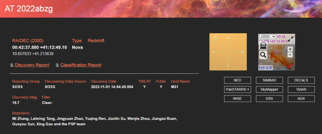 近日,国家天文科学数据中心与星明天文台合作的公众超新星搜寻项目(PSP)于2022年11月发现的河外新星获得证认。下面就一起来回顾一下它的发现及证认过程吧!