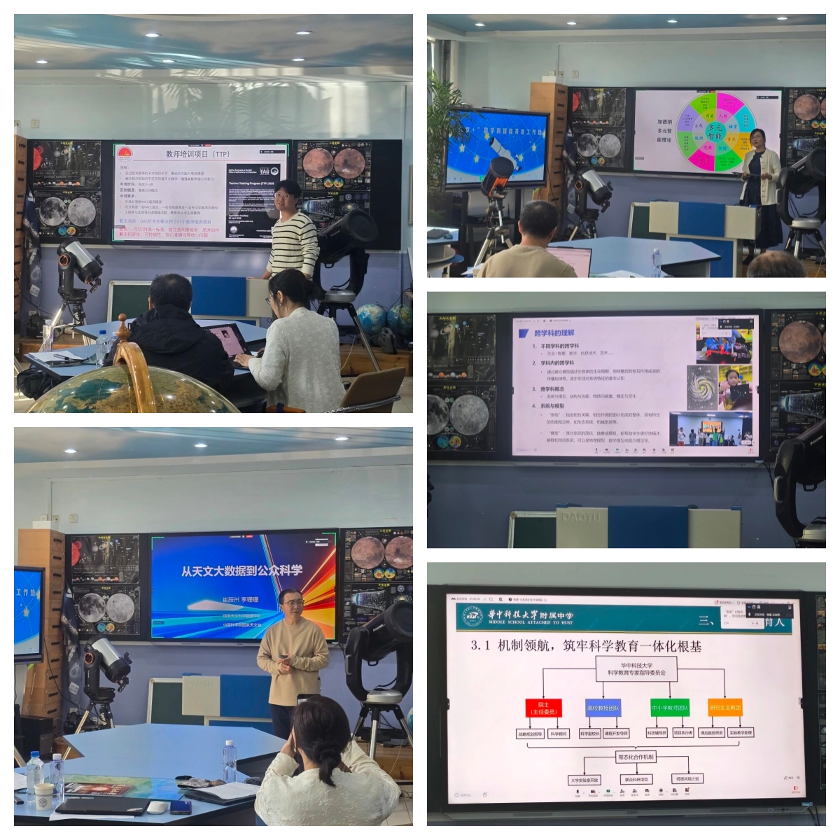 正式的报告环节中,北京天文馆助理研究员张浩鹏博士围绕“IAU OAE中国中心的使命与实践”,带来了国际天文教育的前沿动态。中国科学院国家天文台崔辰州研究员以“从天文大数据到公众科学”为主题,阐释了数据驱动下科学教育的创新路径。华中师范大学乔翠兰教授则聚焦课程标准的时代变革,深入剖析了跨学科实践与复杂问题解决的内在关联,为跨学科课程开发提供了理论支撑。此外,武汉科技馆万望辉老师、华中科技大学附属中学王琴博士也通过线上方式,分别分享了科技馆在跨学科融合方面的实践探索,以及中学阶段科学教育全域协同育人的宝贵经验。