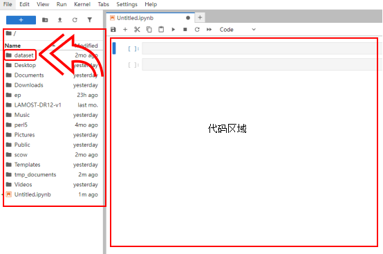 2)登录后,在页面右上角找到图6中红色椭圆区域内的“科学数据”,点击下拉菜单中的“数据列表”。在科学数据列表中搜索“欧几里得空间望远镜Q1数据发布”,找到相应数据集后,点击右侧的“使用”按钮。此时,“欧几里得空间望远镜Q1数据发布”数据将被挂载到用户家目录下的“dataset”目录中。进入“dataset”目录下的“102044”目录,即可看到第一部分所述的八个数据目录。同时,页面将跳转至“交互式应用”页面,如图7所示。