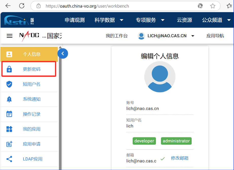 1)申请国家天文科学数据中心用户账号:用户通行证管理系统地址为 https://oauth.china-vo.org,如无账号,可自助注册。