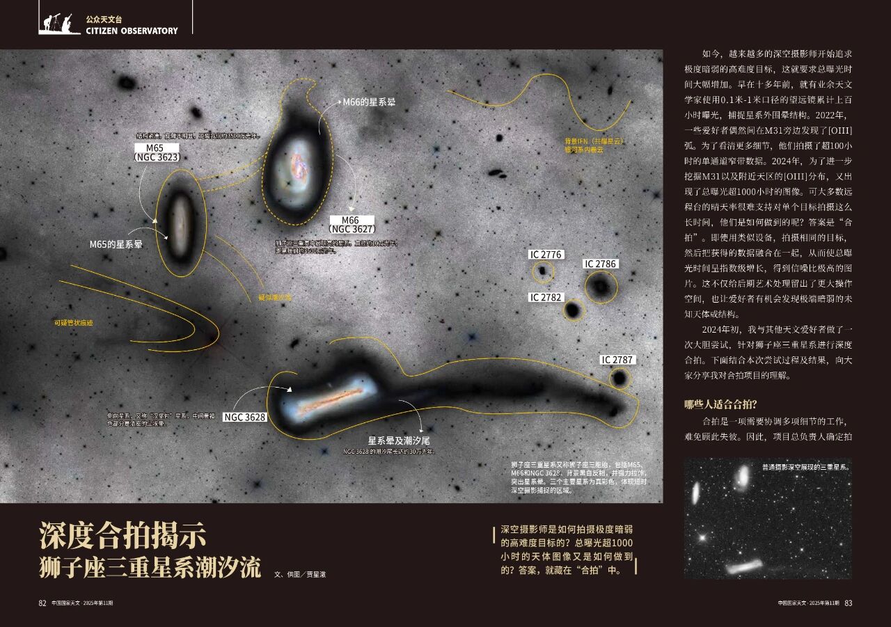 图10 深度合拍揭示狮子座三重星系潮汐流 文/贾星澈