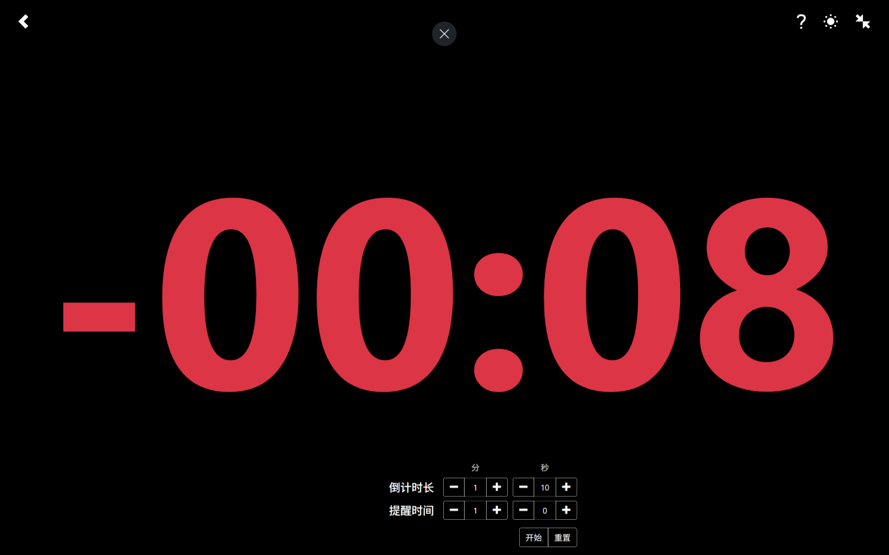 - 超时提示:倒计时结束后,数字转为红色并开始正向计时,明确显示已超时时长。