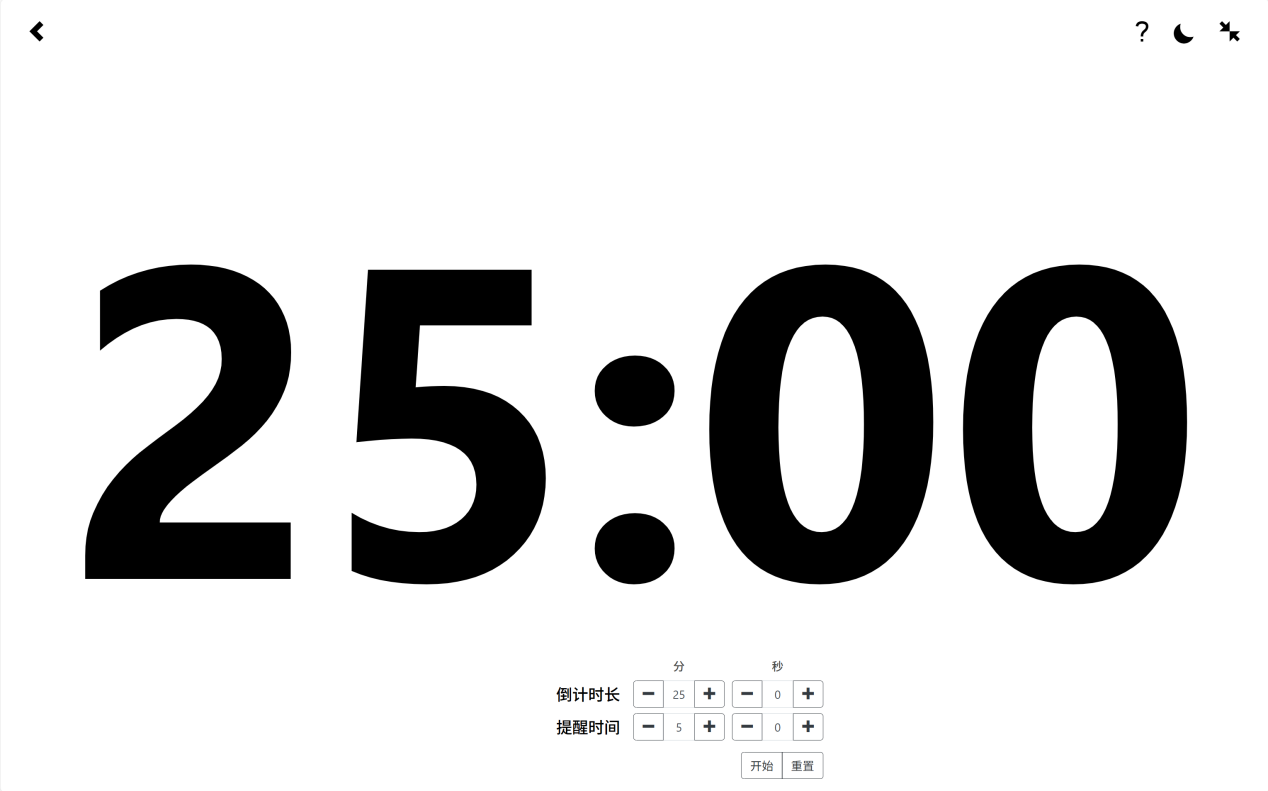 界面设计遵循“极简”原则,去除干扰元素。工具通过倒计时数字颜色的变化,提供直观的阶段提醒: