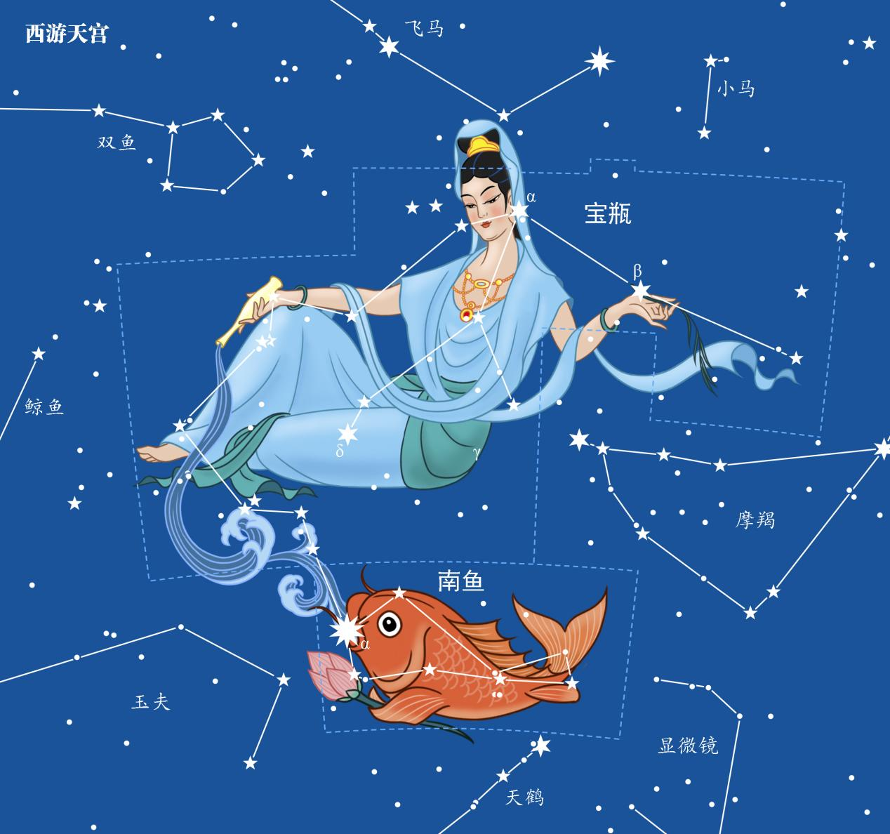 图5 观音与灵感大王对应宝瓶座与南鱼座