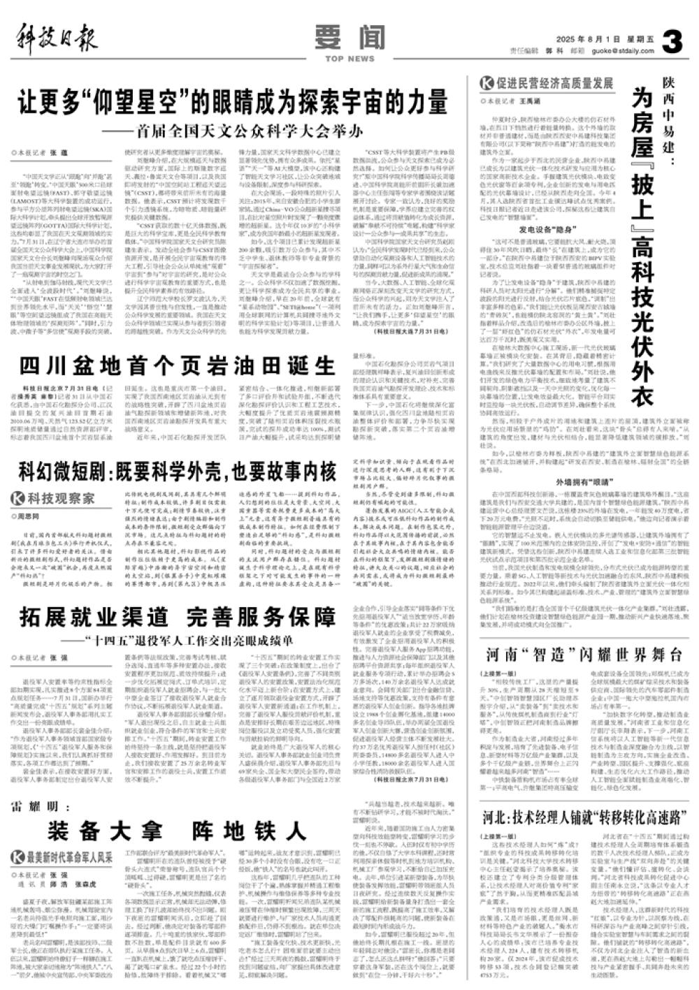 - 科技日报:(8月1日 第03版要闻)让更多“仰望星空”的眼睛成为探索宇宙的力量 报纸快照 链接