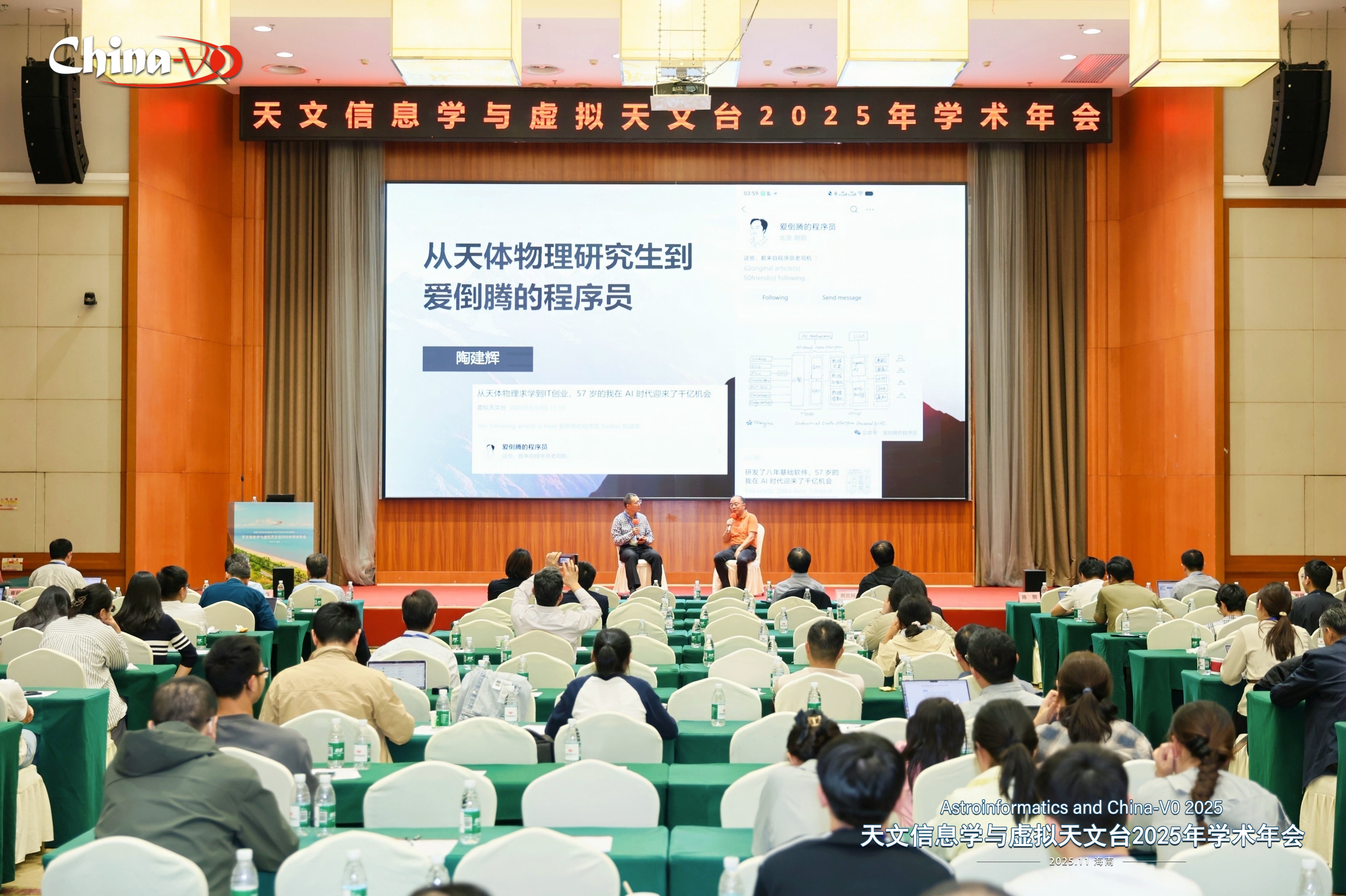 崔辰州:各位代表,下午好。今天我们的话题聚焦于一位从天体物理研究生转型为"爱倒腾的程序员"的嘉宾——陶建辉。他的经历对我们天文学的人才培养来说,是一个非常值得关注的案例。