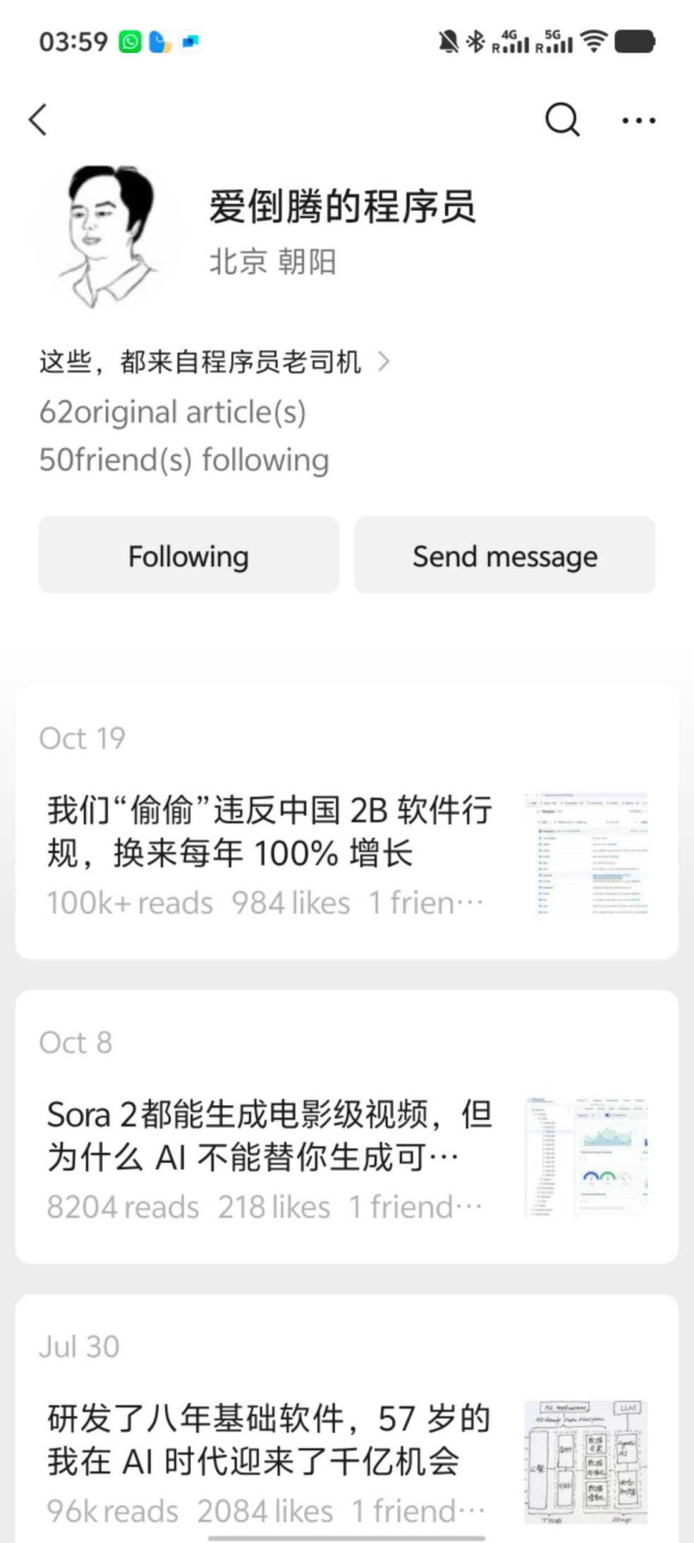 图5 陶建辉个人微信公众号:爱倒腾的程序员